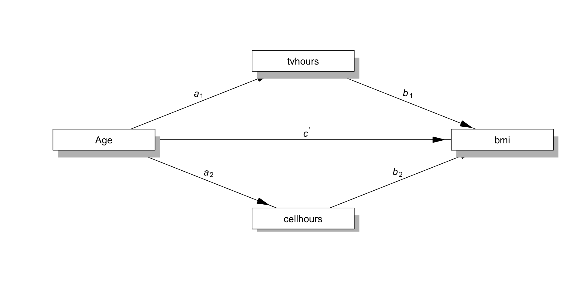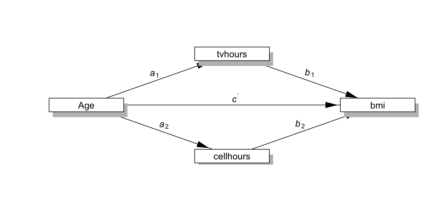 bmi ~ b1 * tvhours + b2 * cellhours + cp * age