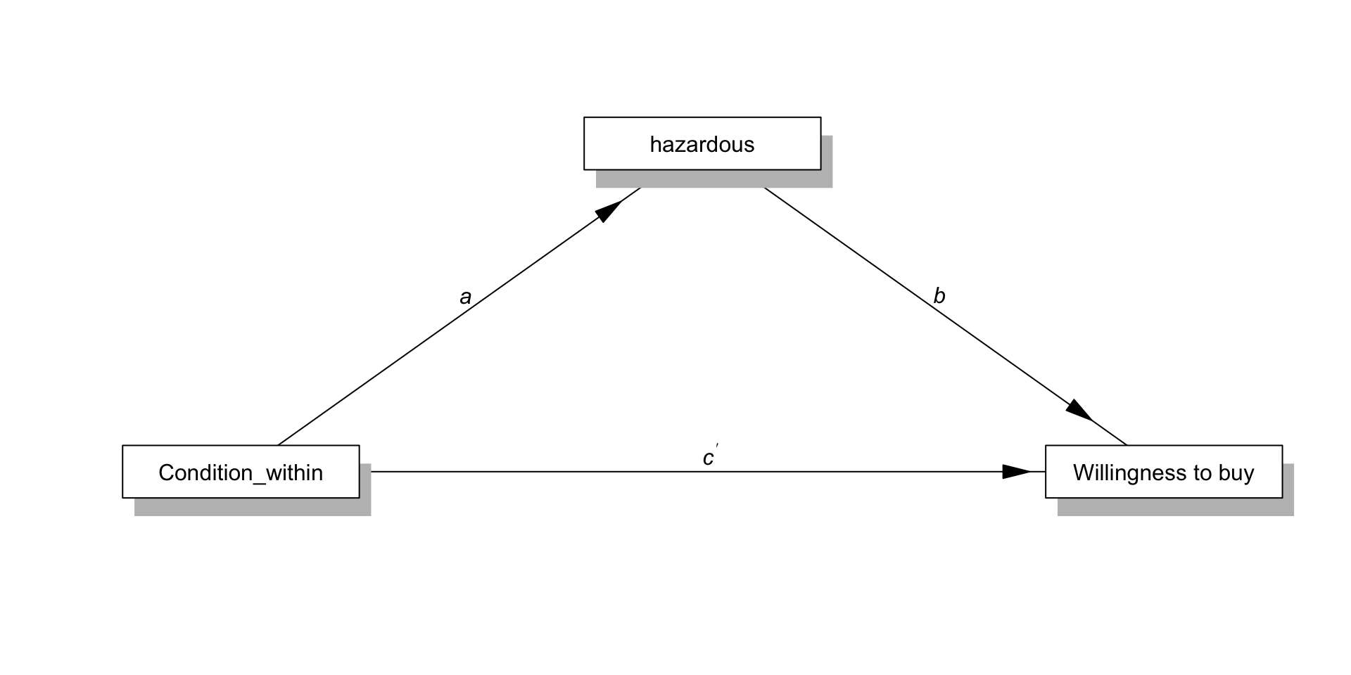 Add in the b (M –> Y) and c’ (direct) paths: X + M --> Y