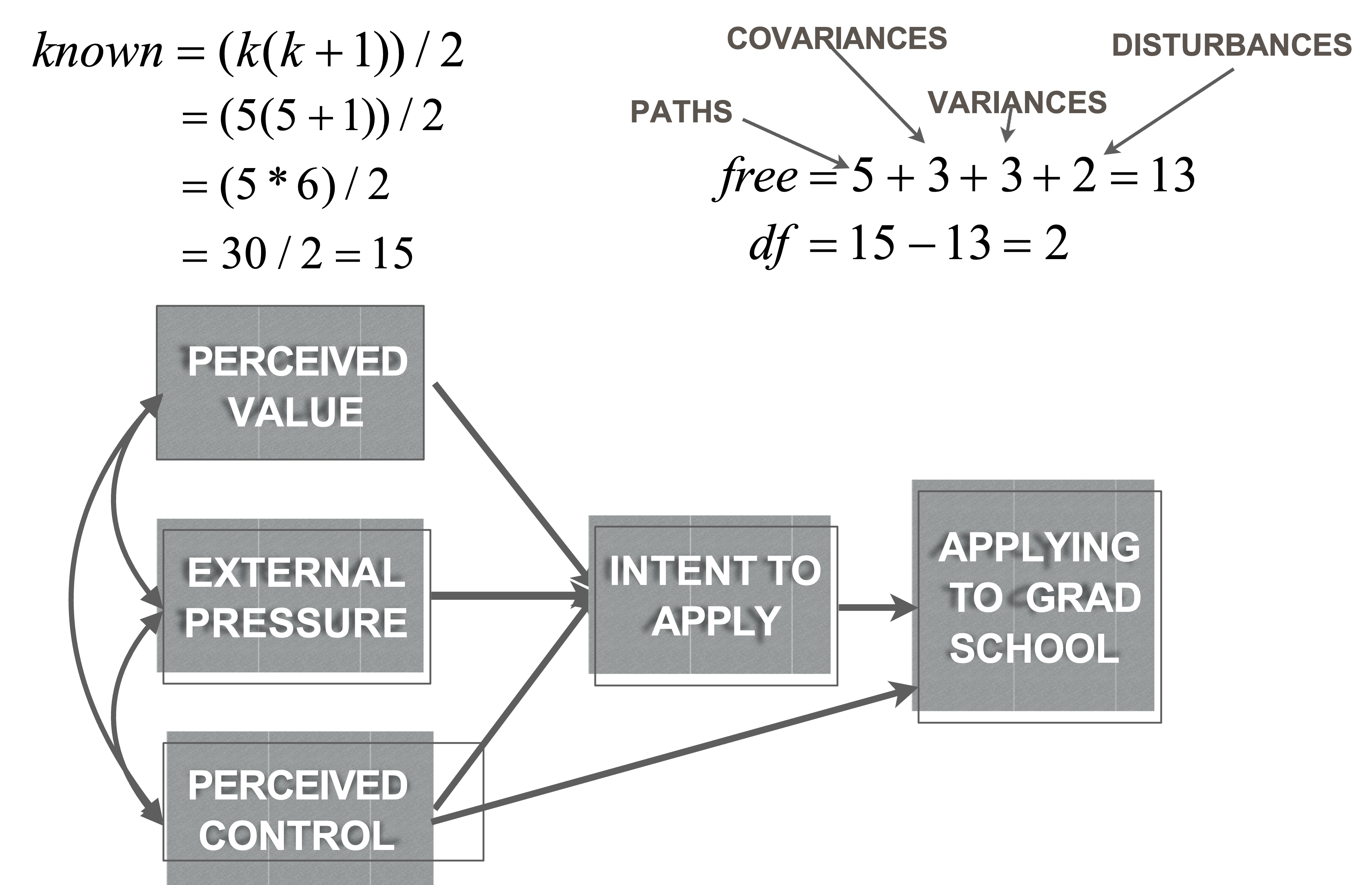intent.to.apply ~ a*perceived.value + 0*external.pressure + c*perceived.control