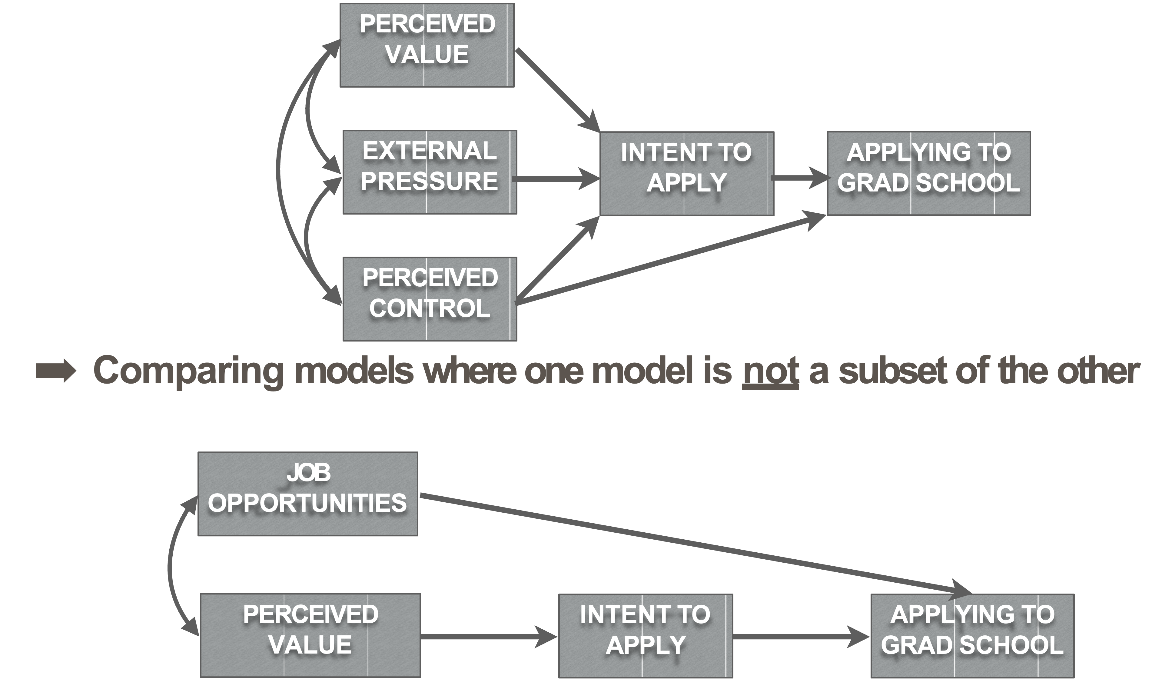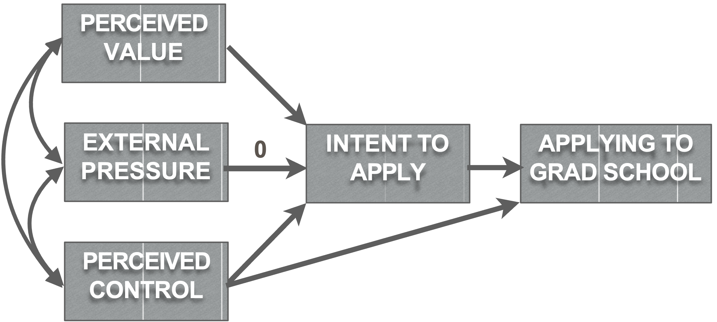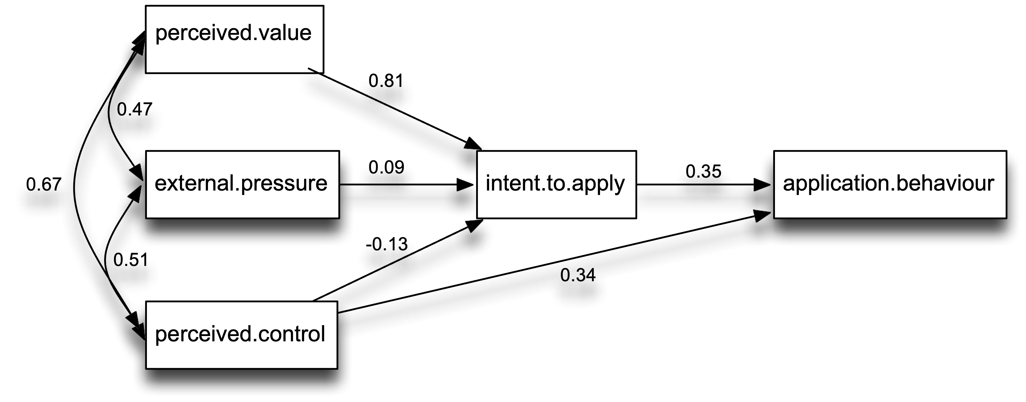labels = c("Intent\nTo Apply","Application\nBehaviour","Perceived\nValue","External\nPressure","Perceived\nControl")