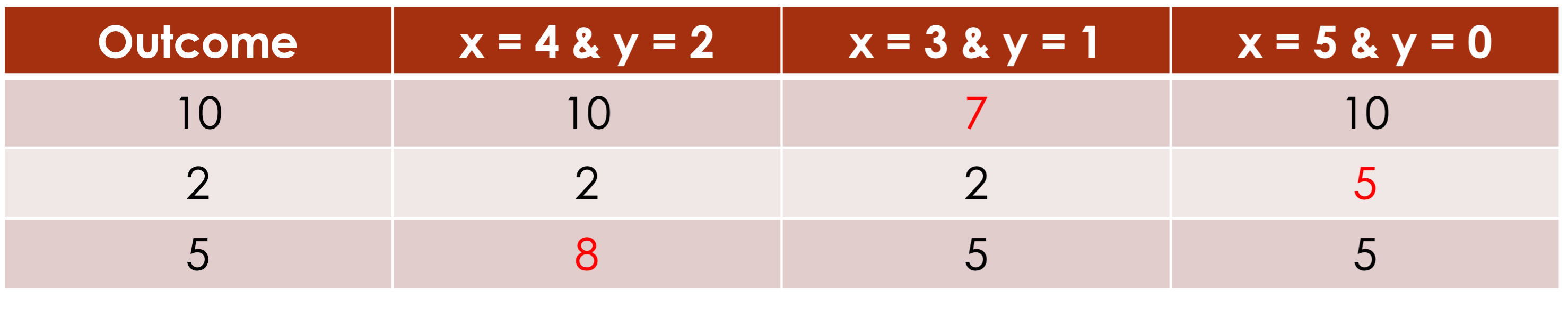 One set of values that can solve the equation